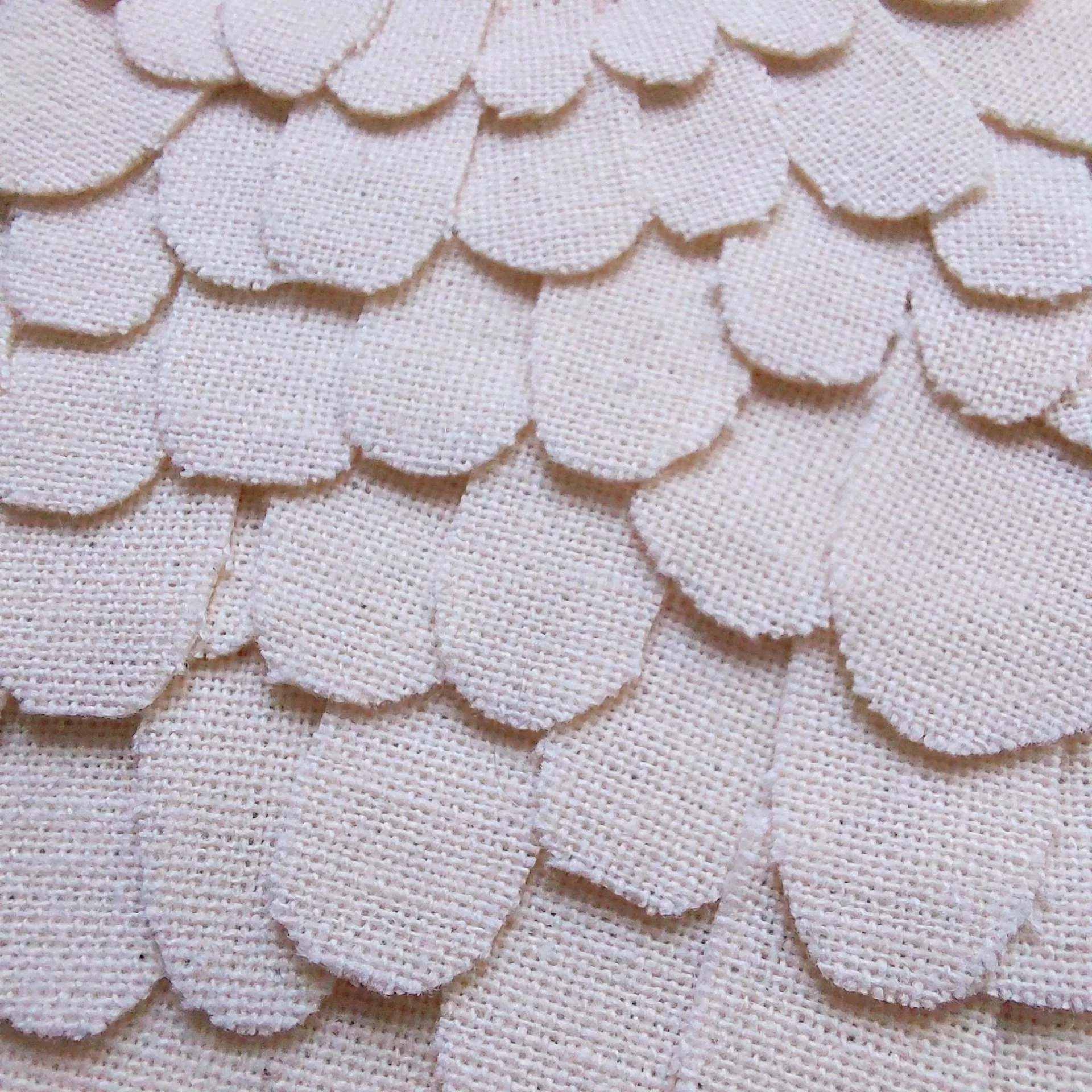 Avec l’envie de réaliser un objet plus personnel et beaucoup moins enfantin. Un objet intemporel et réconfortant, en hommage aux femmes et pour les femmes. Je réfléchis à comment broder sans tenir compte des diagrammes et codes de la discipline. Je développe mes propres techniques de broderie avec comme fil conducteur la simplicité et la légèreté pour sortir de l’image qu’on peut se faire de la broderie classique. J’utilise une toile et du fil dont l’usage d’origine n’est pas la broderie. Ce sont des matériaux que j’avais sous la main quand j’ai commencé, je les ai gardés par prédilection. Je les préfère aux toiles et fils standardisés de broderie.