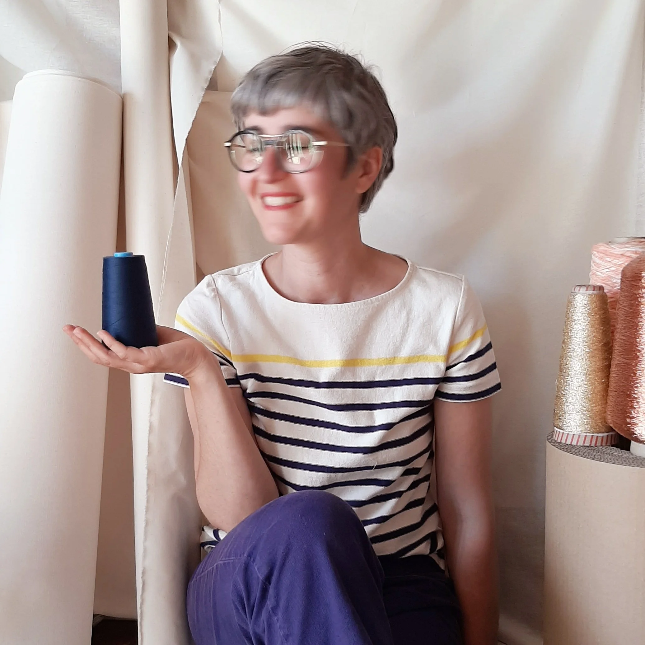 Attachée à la qualité et à la provenance des matériaux, je travaille sur une toile et du fil tissés en France ou dans des pays frontaliers. Le fil que j’utilise provient d’une des dernières filatures du Nord de la France*, et mes aiguilles viennent de la manufacture Bohin, en Normandie, ultime témoin d’un savoir-faire unique.